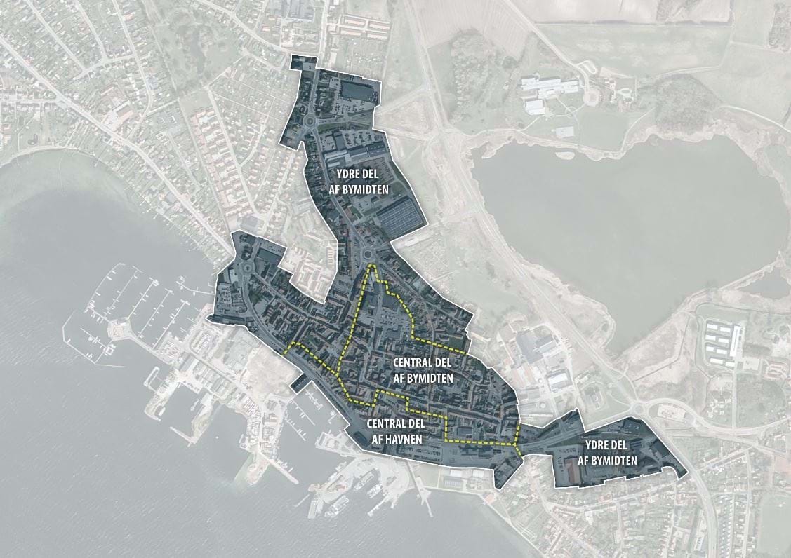 Den centrale bymidte suppleres af og spiller sammen med den centrale del af havnen og de ydre dele af bymidten.
