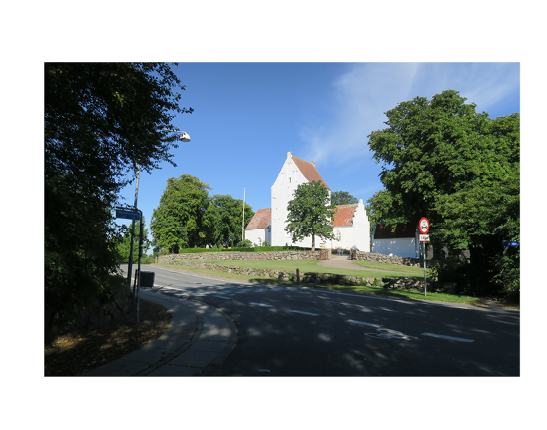 Intakt landsbymiljø i større forstadsbebyggelse med kirke og kirkegård, præstebolig, lærerbolig, den gamle skole, der i dag anvendes som bibliotek, og en gammel smedje.