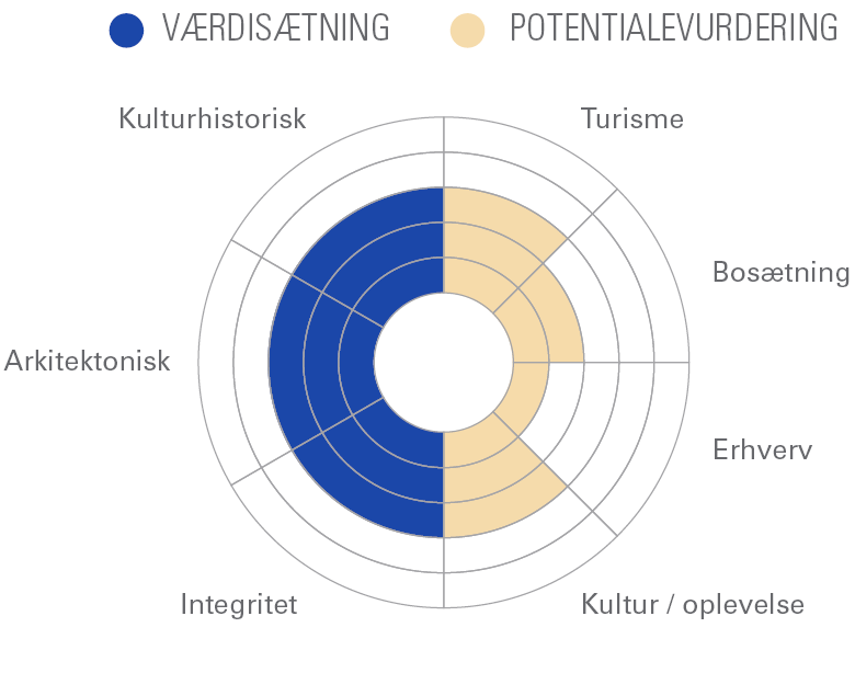 Det er derfor vigtigt, at områdets bygninger bevares og ændringer foretages varsomt og med respekt for arkitektur og detaljerigdom.