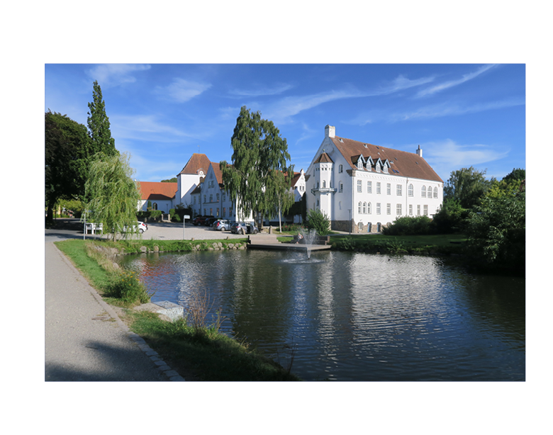 Ryslinge Højskole er opført i nationalromantisk stil og ligger smukt indpasset i landskabet.